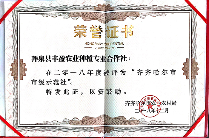齊齊哈爾市市級(jí)示范社